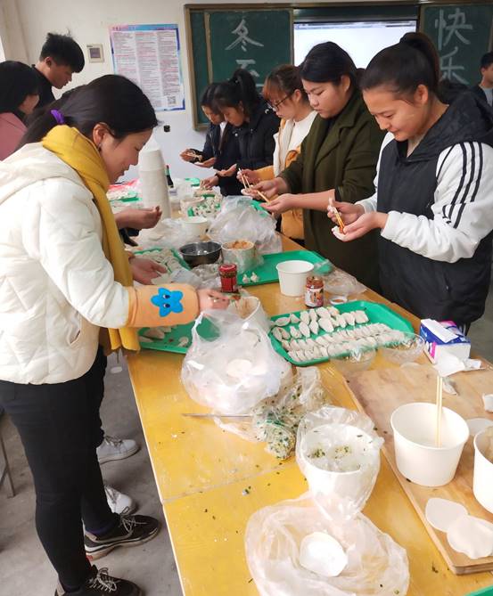 冬至包饺子是我国许多地方的传统习俗,不知不觉已接近年关,一年一度的冬至悄然来临。为了让同学们近距离感受中国传统文化的魅力,并增进同学们之间的友谊,2018年12月22日冬至当天,bw西汉姆联组织第十五届员工干部一起“迎冬至,包饺子”,过了一个快乐而温馨的冬至。bw西汉姆联团总支书记王换换老师来到活动现场和大家一起包饺子,并送上节日祝福,与员工们一起共享欢乐。活动中大家都热情高涨,各显神通,整个包饺子过程欢声笑语不断,大家齐心协力、精诚合作,一排排独具个性的“饺子”很快就摆满了一个个盘子。热气腾腾的饺子散发的阵阵饺子香,温暖了离家在外的广大学子。