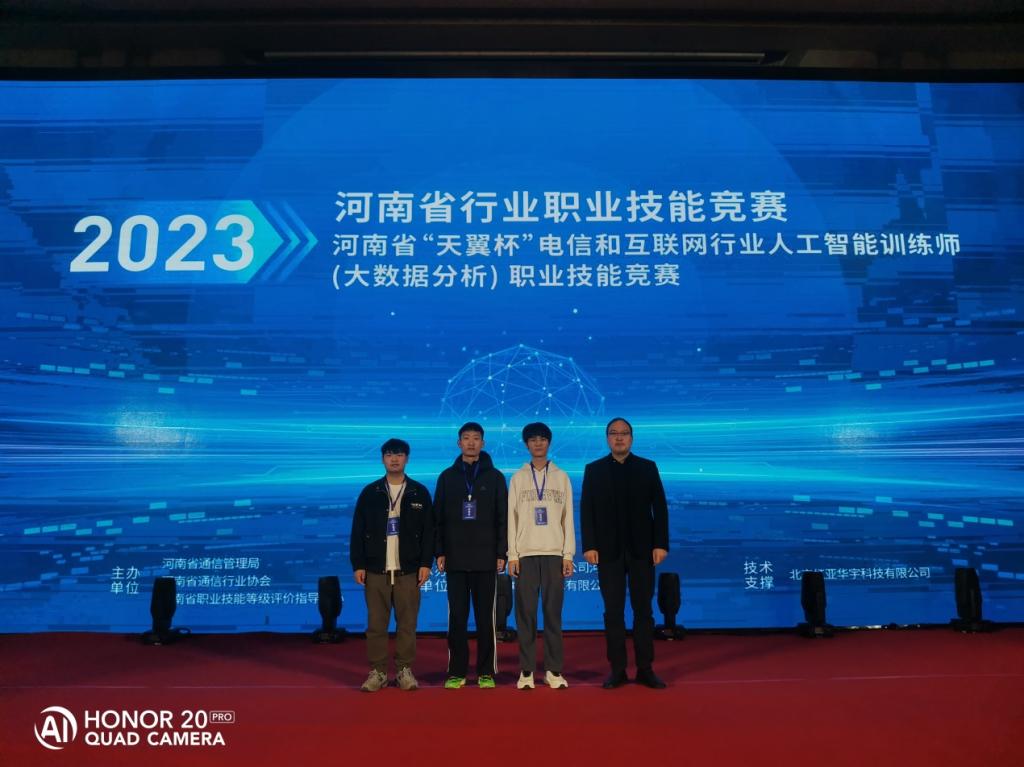 11月25日,2023年河南省行业职业技能竞赛—河南省“天翼杯”电信和互联网行业人工智能训练师(大数据分析)职业技能竞赛在郑州圆满落幕。公司bw西汉姆联楚书来、冯腾霄两位老师指导,孙梦杰、李豪宇、李金普三名同学组队参赛,比赛中同学们沉重稳重,发挥出应用水平,最后经过三个小时的多轮比拼,以637分的成绩稳居榜首,取得职教组金奖,这也是公司在该赛项上的最好成绩。