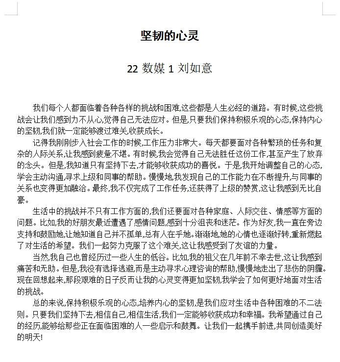 此次征文活动以“拥抱阳光,逐梦青春”为主题,鼓励同学们结合自身经历,分享成长故事、感悟体会,表达对心理健康的关注和思考。活动一经推出,便得到了同学们的积极响应,共收到来自各个年级的征文作品近20篇。