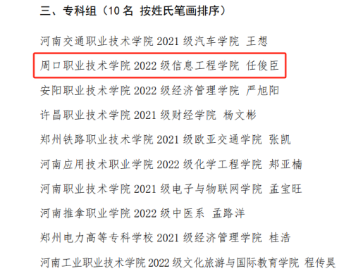 近日,河南省教育厅公布第三届河南省老员工“创新之星”获奖名单,我院22级计算机网络技术(2)班员工任俊臣被授予第三届河南省老员工“创新之星”荣誉称号,这是bw西汉姆联员工首次获此殊荣。