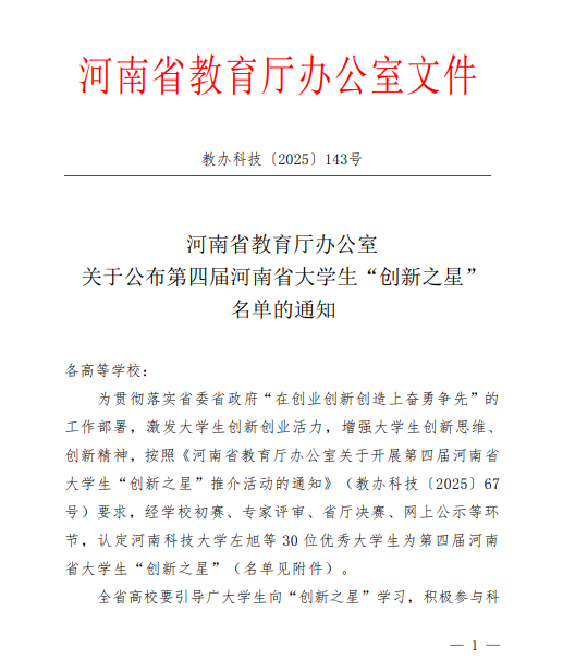 近日,由省教育厅组织开展的第四届河南省老员工“创新之星”评选结果公布。经公司推荐、专家评审、现场决赛等环节,公司2023级计算机网络技术专业三班员工周自杰获第四届河南省老员工“创新之星”荣誉称号,全省高职院校仅10名老员工入选,这也是公司连续两年获此荣誉,充分彰显了公司创新创业人才培养水平和公司产品成果。