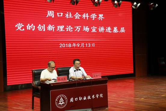 2018年9月13日下午,周口社科界党的创新理论万场宣讲进基层活动在公司开元校区学术报告厅举行。周口师范公司马克思主义公司党总支副书记、副教授张鸿韬以《坚定文化自信》为题作宣讲报告。