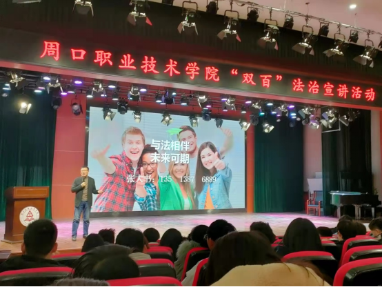 张大书老师以《学习习近平法治思想、做新时代阳光守法老员工》”为题,从中华民族伟大复兴的光明前景、法治社会的时代课题、做新时代阳光守法老员工三个方面进行深刻讲述。在讲座中,张大书老师以具体案例为切入点,深入浅出,声情并茂、旁征博引、娓娓道来,赢得同学们的阵阵掌声。最后,他勉励全体同学们要扣好人生的扣子、知法、懂法、守法是大学的基本义务,与法相伴、未来可期。
