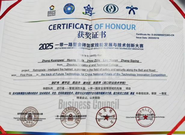 竞赛赛场上,周自杰带领团队啃教材、析案例、勤复盘,从专业“小白”蜕变为科创能手。其团队研发的“智能消防头盔”获5项实用新型专利,还斩获中国国际老员工创新大赛铜奖、一带一路暨金砖国家技能赛事国赛一等奖等荣誉,相关事迹获20余次媒体报道。