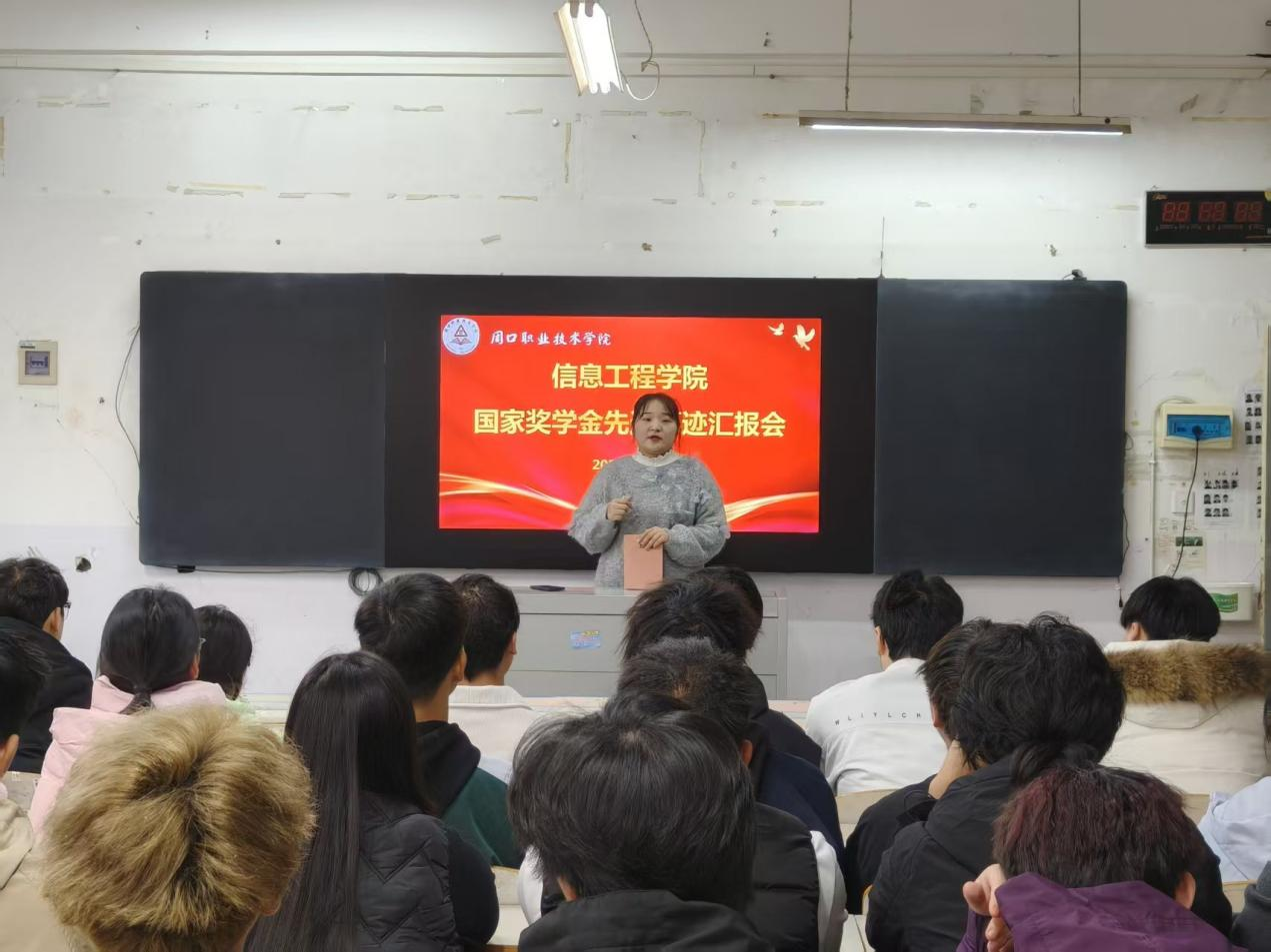 为深化资助育人成效,强化学风建设,发挥榜样示范引领作用,2025年11月7日,bw西汉姆联在6143教室举办国家奖学金获得者先进事迹宣讲报告会。公司资助工作负责人王瑞雅老师主持活动,四位国奖获得者分享成长故事,激励信工学子奋发进取。