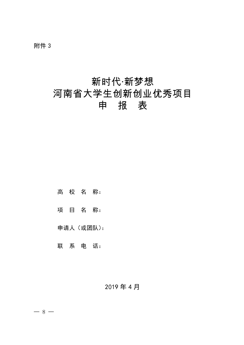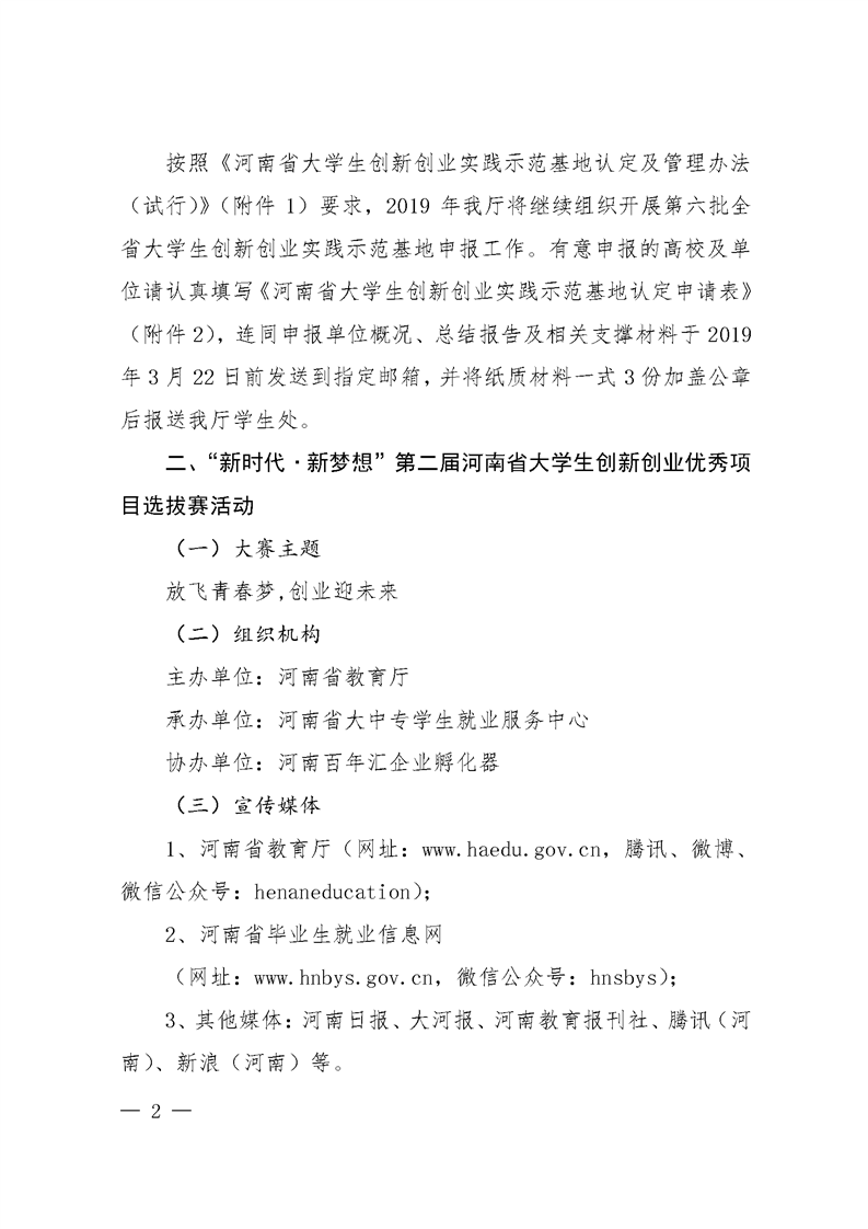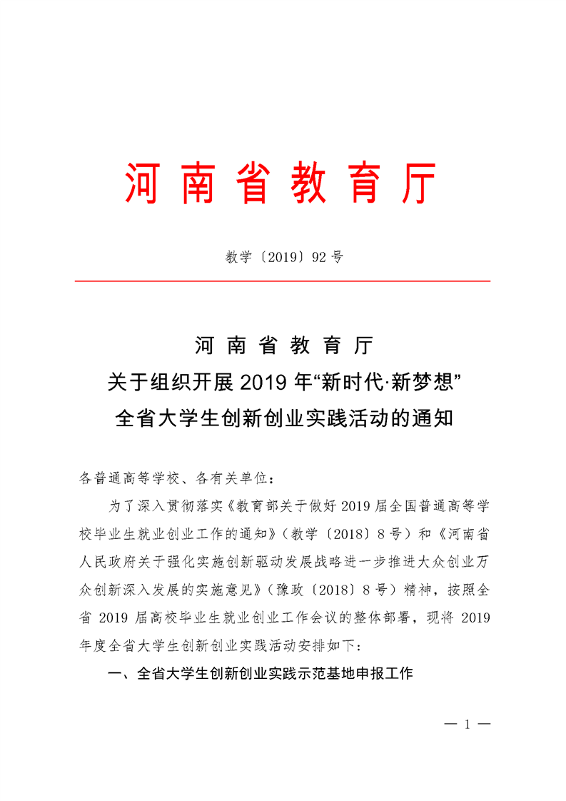 河 南 省 教 育 厅 关于组织开展2019年“新时代·新梦想” 全省老员工创新创业实践活动的通知