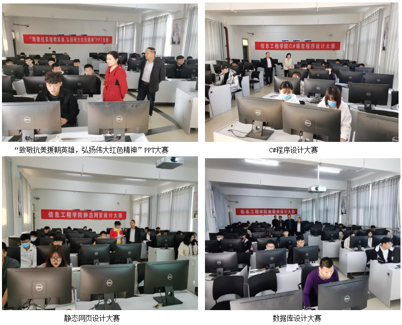此次大赛有“致敬抗美援朝英雄,弘扬伟大红色精神”PPT大赛33人参赛、“网线制作技能大赛”19人参赛、“ C#程序设计大赛”24人参赛、“ 静态网页设计大赛”41人参赛、“ 数据库设计大赛”75人参赛。在评委的公平、公正的评选下,各项赛事均已评出一、二、三等奖。