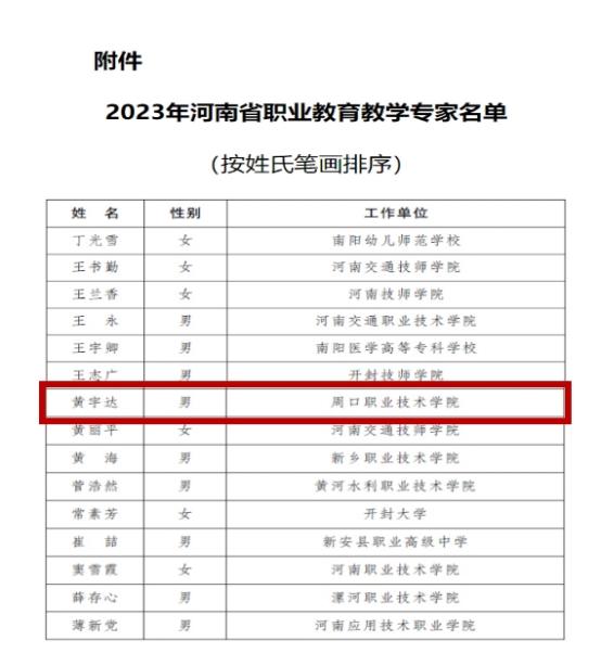 黄宇达老师自从事公司产品工作以来,勤于学习,开拓进取,精益求精,先后被评为河南省人工智能学会理事、河南省综合评标专家、周口市青年科技奖、周口市专业技术拔尖人才、周口市职业公司产品专家等。公开发表学术论文三十多篇,主持(参与)省市级科研项目十八项,获市厅级及以上科研成果奖十六项,参编著作六部,实用新型专利四项,校级专业群、科研团队带头人,作为指导老师指导员工获省职业技能大赛二等奖以上七项。