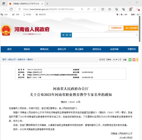 近日,河南省人民政府办公厅印发《关于公布2023年河南省职业公司产品专家名单的通知》(豫政办〔2024〕10号),经省政府审核批准,公司黄宇达经理获评2023年河南省职业公司产品专家。